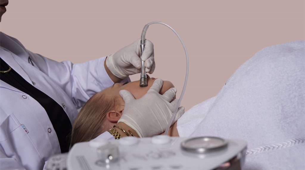 Diamond Microdermabrasion ist eine Form des Peelings, bei der die oberen Hautschichten kontrolliert abgetragen werden. Es handelt sich hierbei um ein Poliergerät mit feinen Diamantaufsätzen. Das Gerät arbeitet ohne chemische Wirkstoffe allein durch mechanische Einwirkung. Behandelt wird lediglich die oberste Hautschicht, sodass keine Verletzungsgefahr für das umliegende Gewebe besteht.